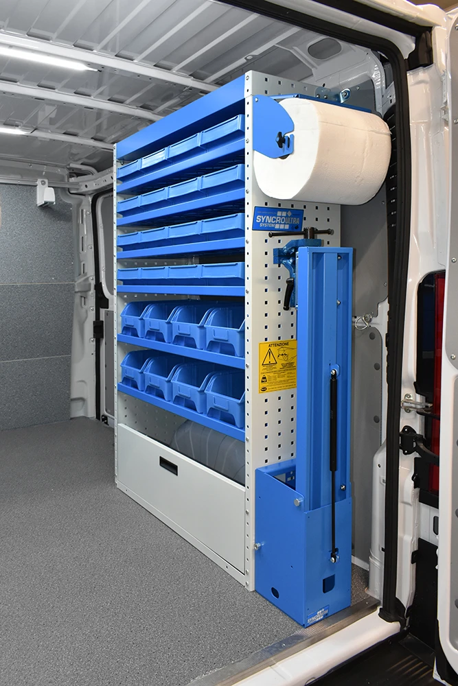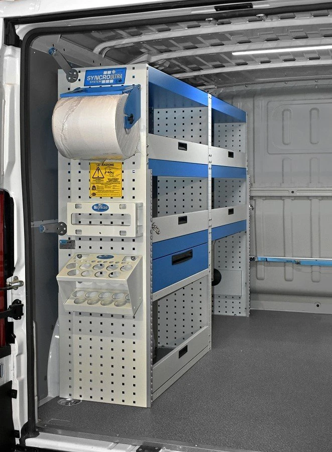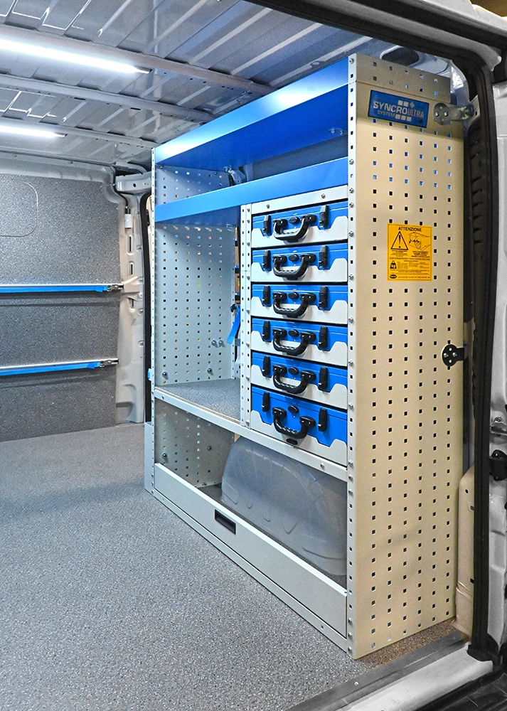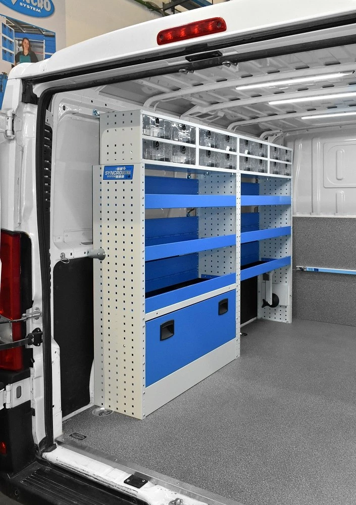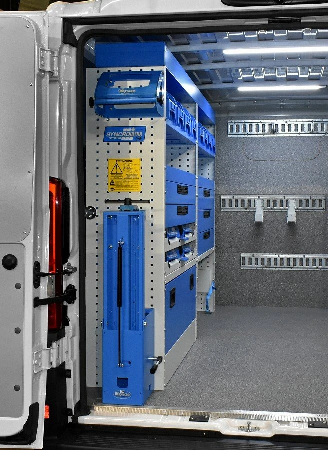 Die Regalsysteme für den Peugeot Boxer gestatten die optimale Nutzung des Platzangebots im eingerichteten Fahrzeug; eine Investition maximal auszuschöpfen, ist eine Gelegenheit, die sich kein Unternehmer, der auf die Optimierung der Kosten achtet, entgehen lassen kann.